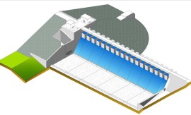 • Spillway; structure located on right side and consisting in two free sills and a gated sill – design flow: 16357 m3/s (1000 years RP).